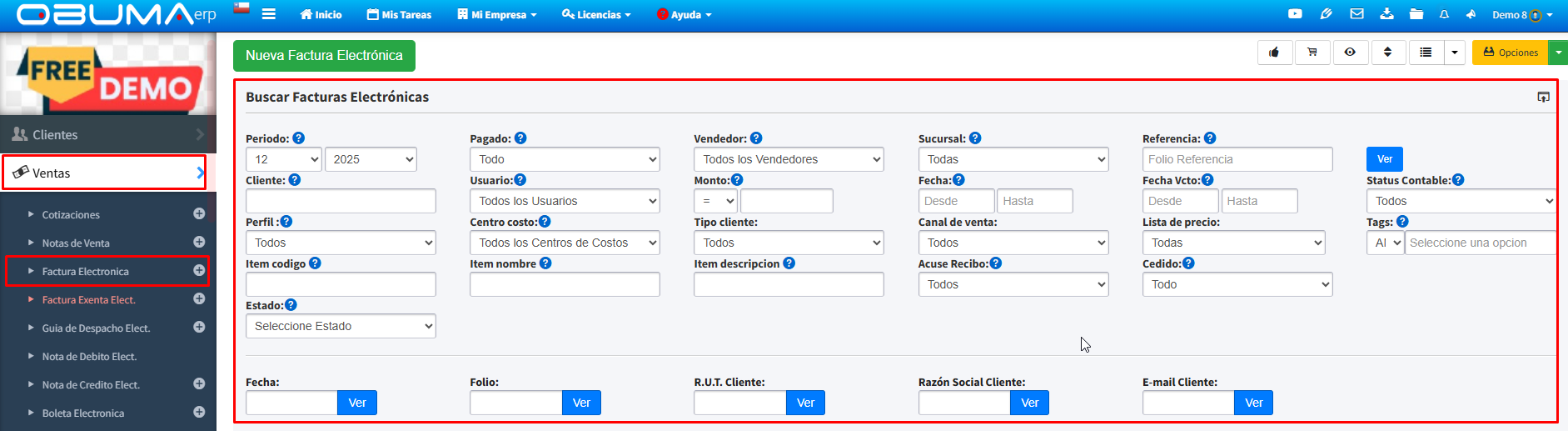 Ventas ⇒ Facturas Electronicas ⇒ Buscar la factura a la cual le emitira la Nota de Credito.