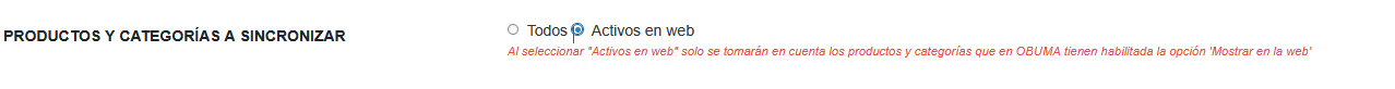 ⚠️ Nota: Los productos que no tengan habilitado "Mostrar este producto en la web" no se sincronizarán cuando la opción “Activos en la web” esté habilitada en el plugin .