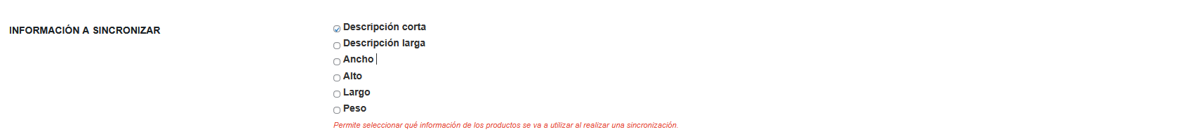 Al igual que la sincronización de productos, permite seleccionar la categoría que queremos sincronizar.