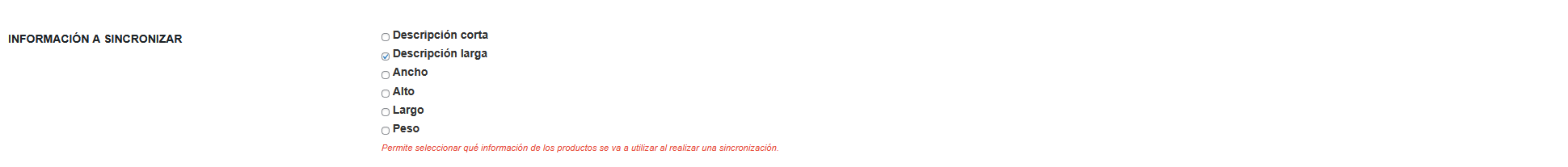 ⚠️ Nota: Los demás campos como descripción larga, peso, alto, ancho y largo no se actualizarán en este ejemplo, ya que no están activados en las opciones.