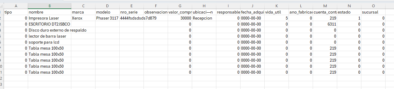 | 13 | estado | Indicar el estado del activo | 0=inactivo 1=activo | |
