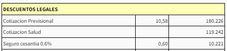 Luego rebajar los descuentos legales de cargo del trabajador (AFP, salud y seguro de cesantía del trabajador).