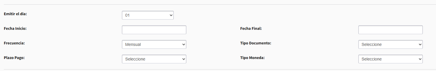 Día del mes en que se generará la factura (ej. día 01). -