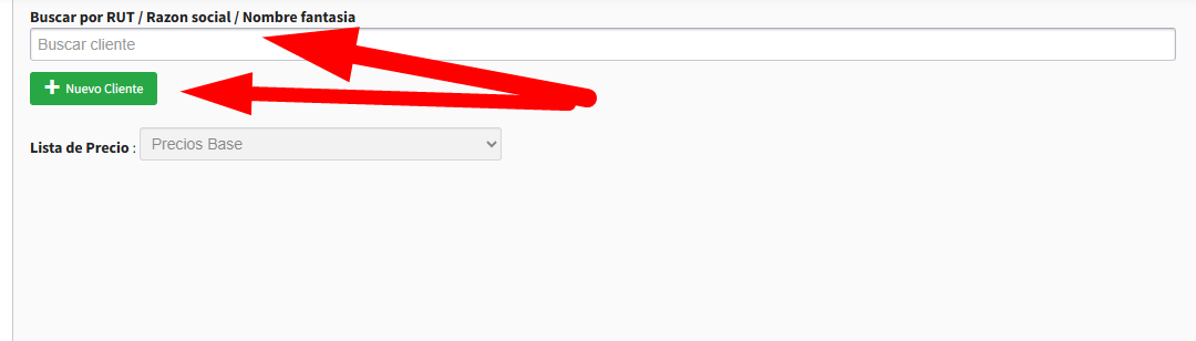 Si el cliente es nuevo haces click en Nuevo Cliente e ingresas todos los datos solicitados.
