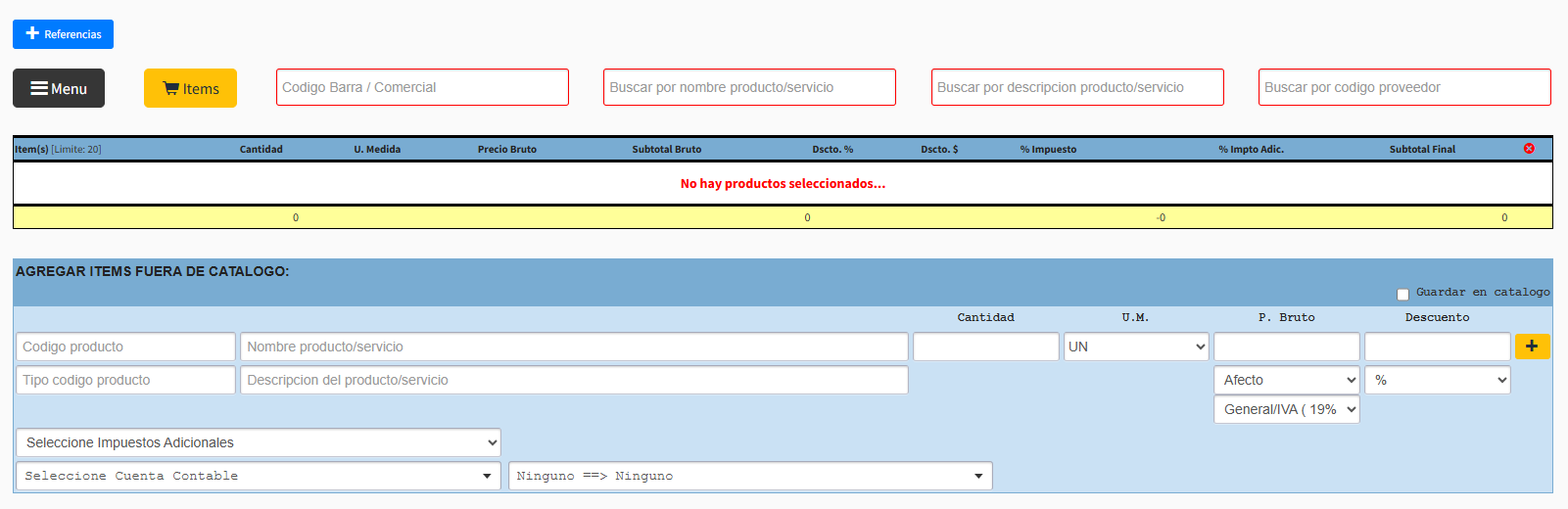 Como ítems fuera de catálogo ( item único solo para ese documento )