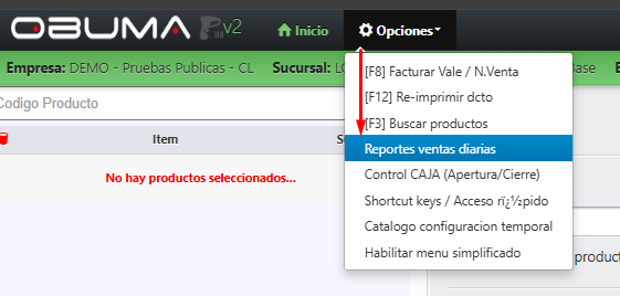 https://www.obuma.cl/ayuda/articulo/781/como-obtener-un-reporte-de-ventas-diariasPara obtener un Reporte de ventas Diarias desde el modulo de ventas, debes realizar los siguientes pasos:
