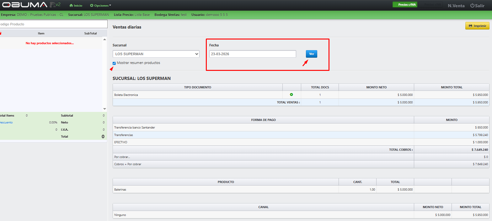 El Reporte de Ventas Diarias es una herramienta clave dentro del módulo de ventas de OBUMA ERP, diseñada para entregar una visión clara, ordenada y detallada de las transacciones realizadas en un día específico.